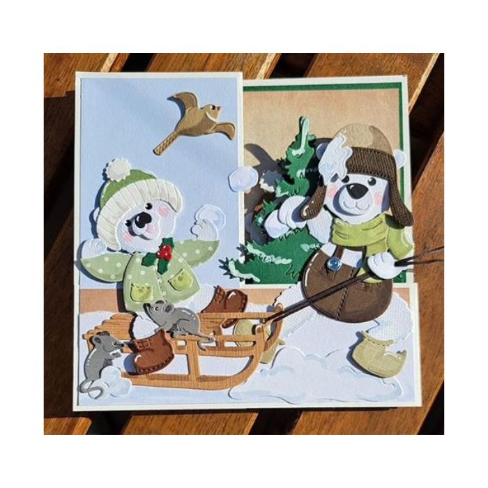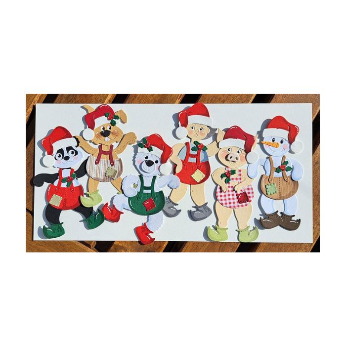 By Lene cutting die med nisse tøj til den store isbjørn som motiv.