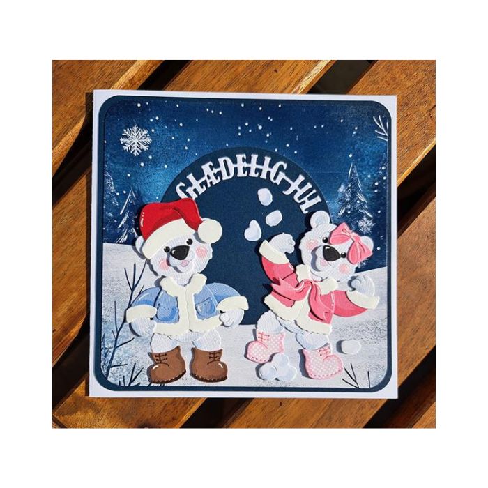 By Lene cutting die med tøj til den lille baby isbjørn som motiv.