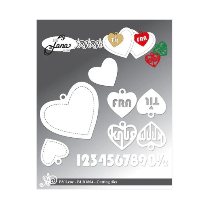 By Lene cutting die med til og fra kort og hjerter som motiv.