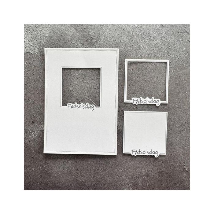 Simple and Basic dies ink. stempel med en firkantet ramme med teksten "Fødselsdag" som motiv.
