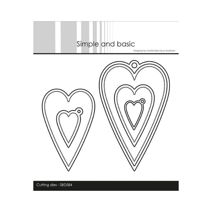 Simple and Basic dies med aflange hjerter som motiv ink. tag.
