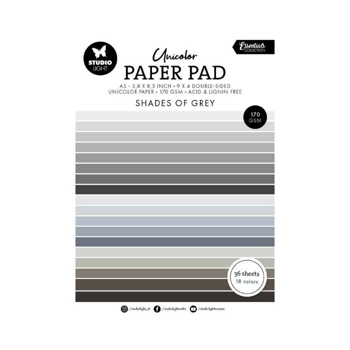 A5 blok med 36 dobbeltsidet ark i grå nuancer.